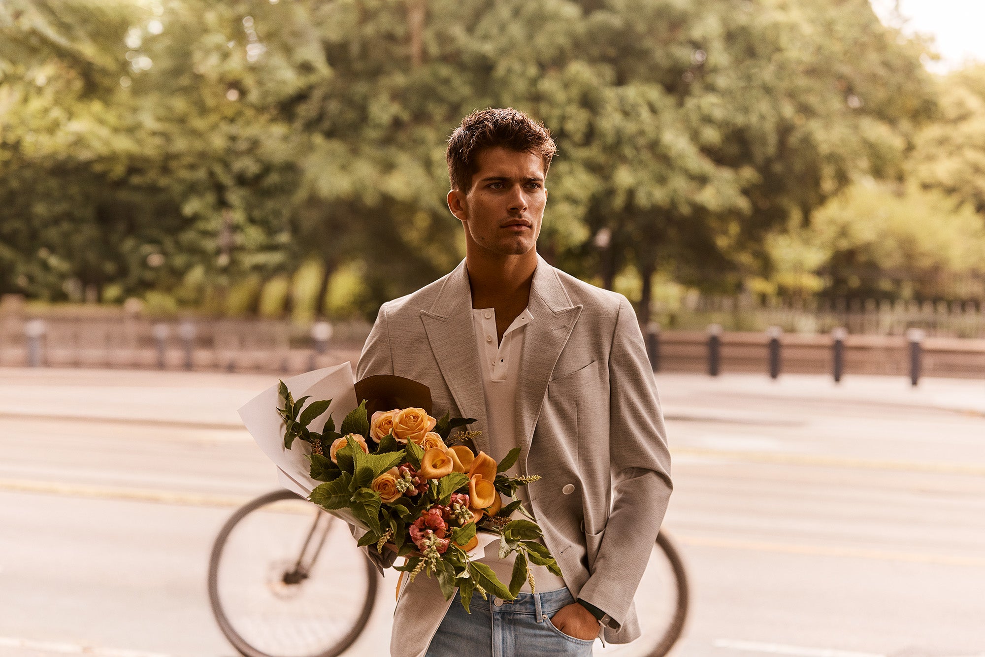 The feeling of late afternoon sun settling on your skin. Silk catching the last flicker of light as day stretches into evening. The smell of fresh bouquets carried home at dusk. Warm stone and city air. Sleeves rolled up. Your first lick of gelato, melting faster than expected.