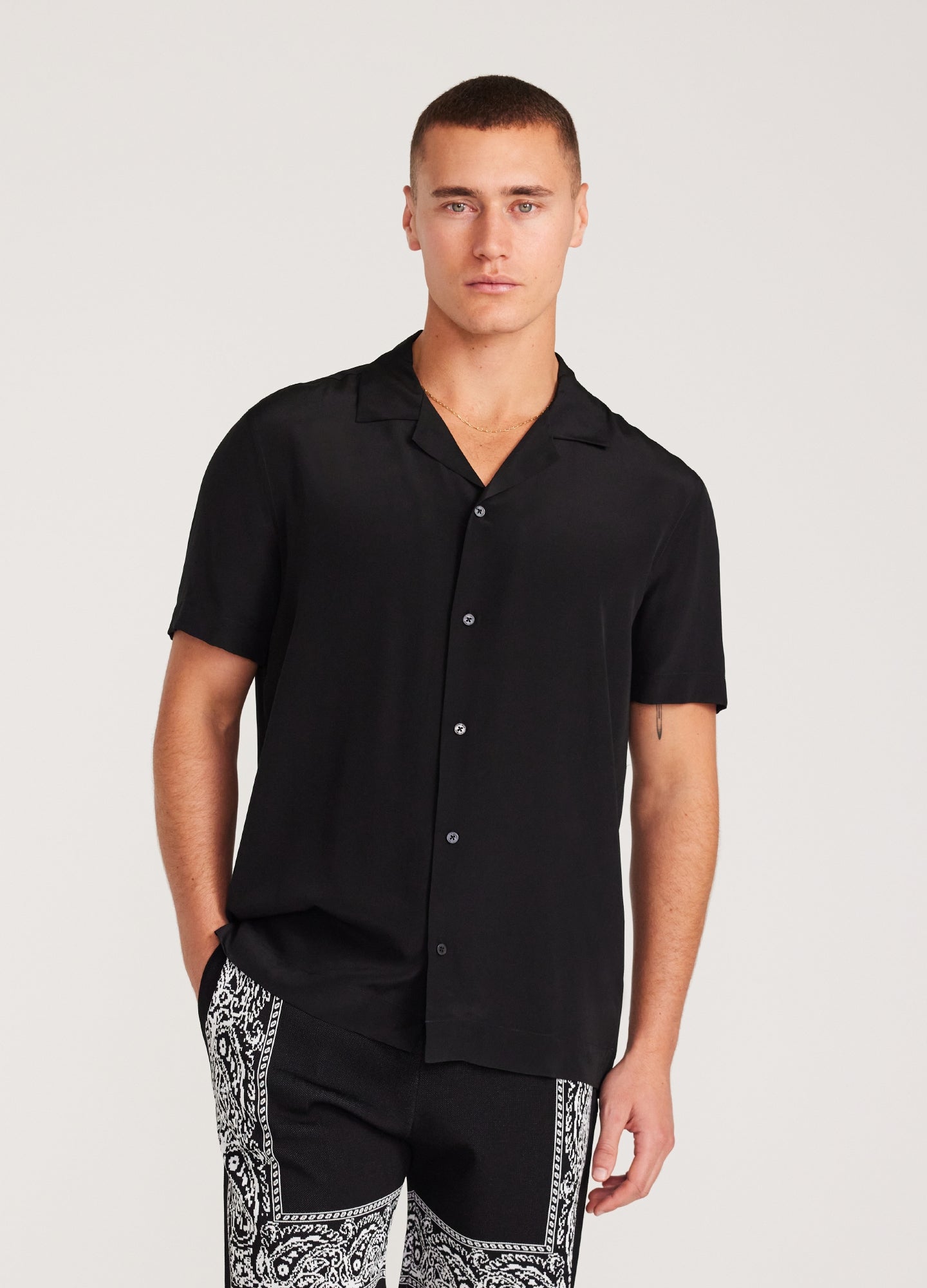 Camp Collar Silk Shirt Black