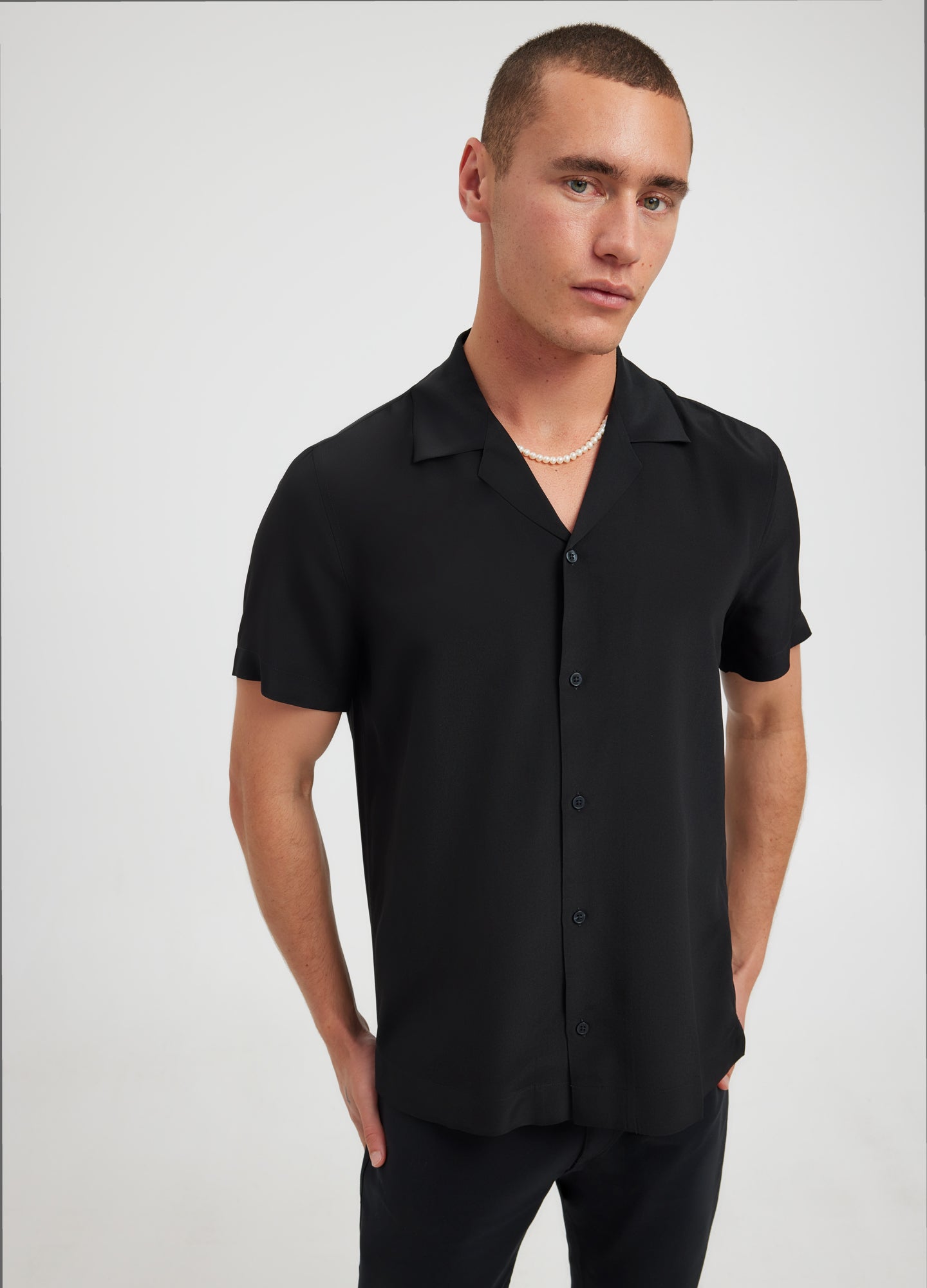 Made from pure silk Crepe-de-Chine fabric with soft texture, this Camp Collar Silk Short Sleeve Shirt has luxurious feel and elegant drape. Tailored in relaxed fit camp collar style, this versatile shirt is perfect to wear for parties, holidays and smart casual occasions. Redefine your wardrobe with this exquisite piece that embodies timeless charm and modern flair.