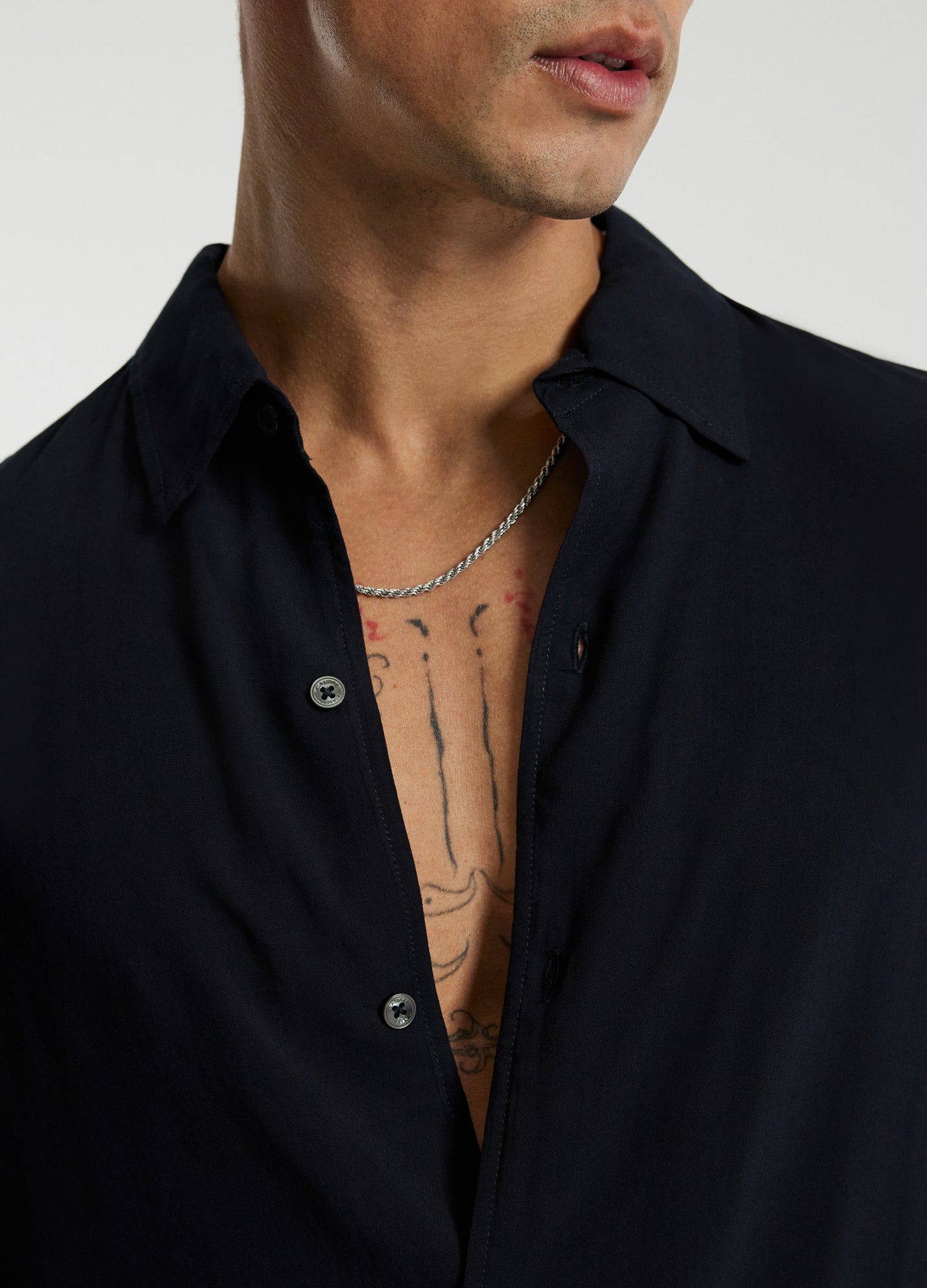 - Button fastening at collar