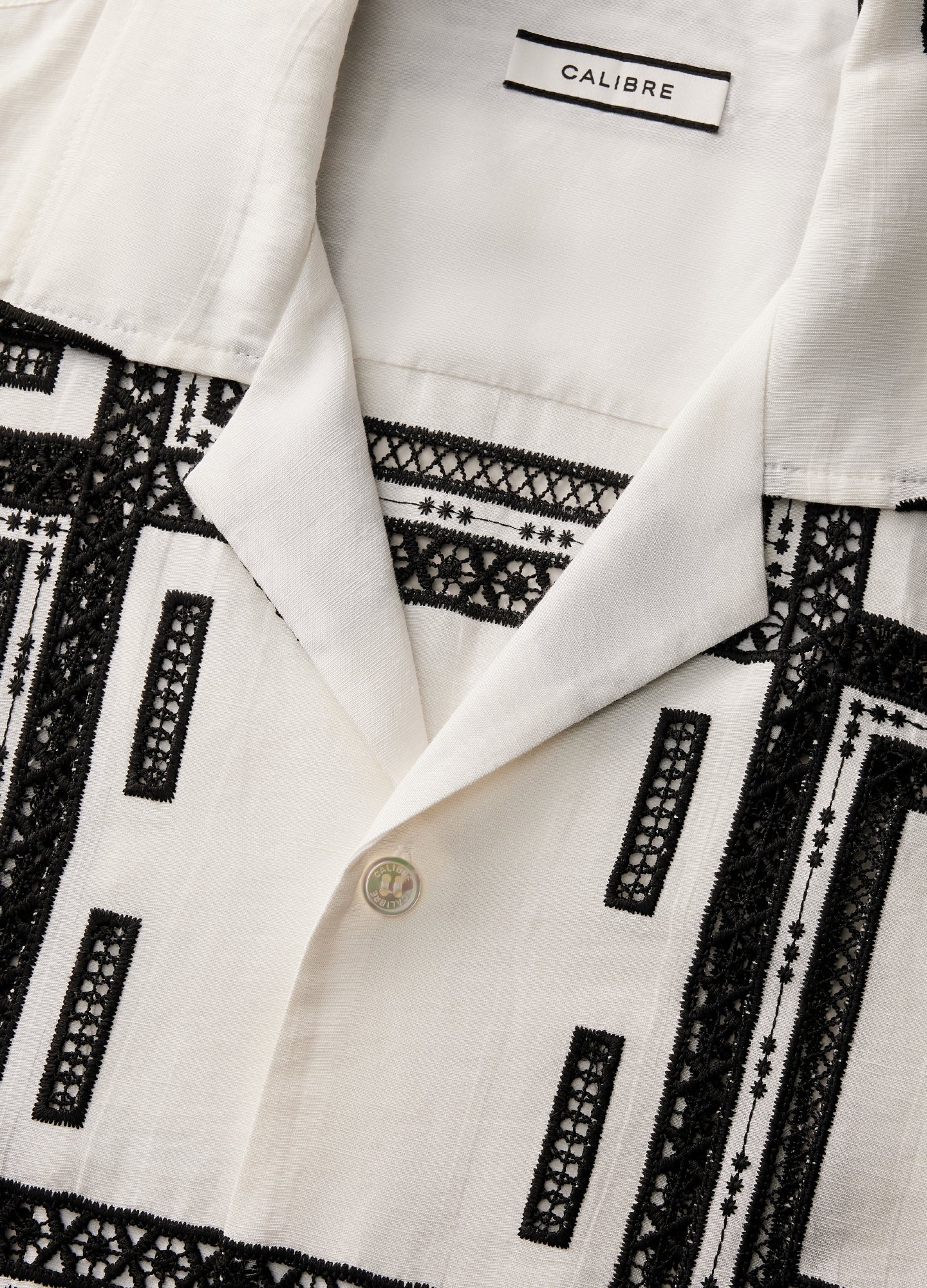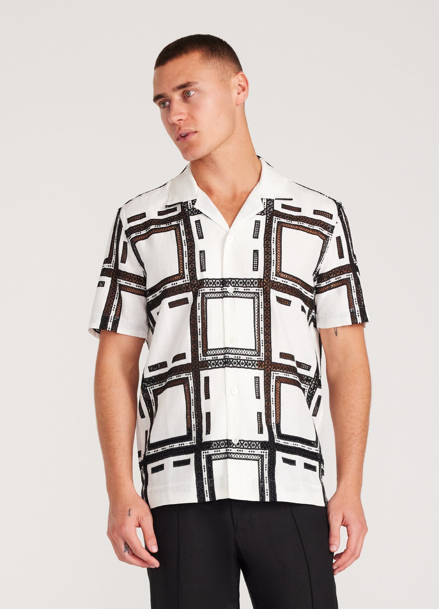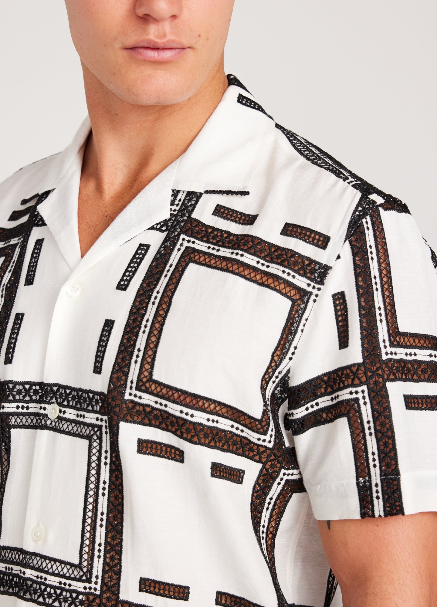 The Framed Embroidery Short Sleeve Shirt is an outfit maker. Cut from a silk, hemp and cotton blend, it boasts graphic details and an open neck camp collar. We love it styled with black drawstring pants and a tank.