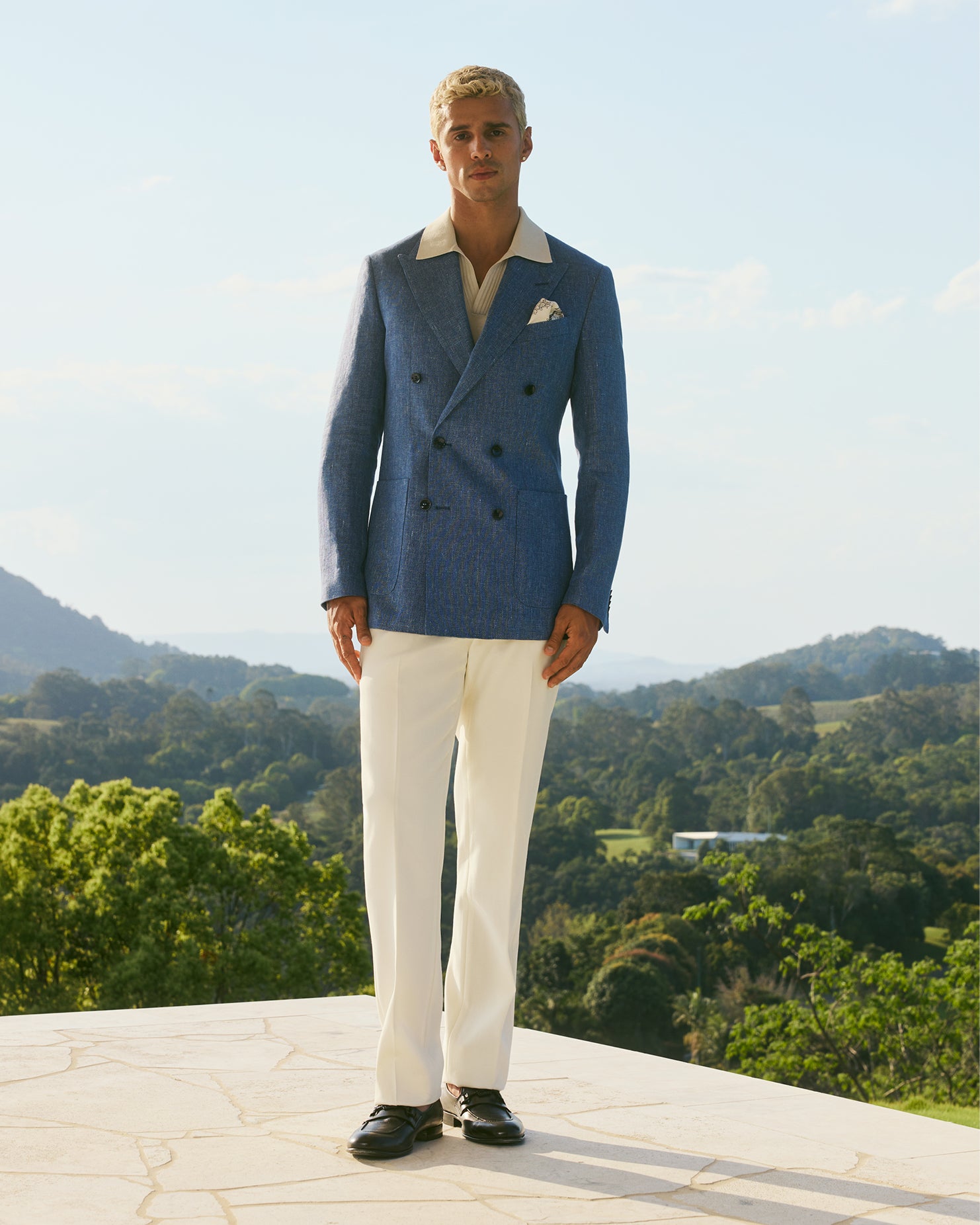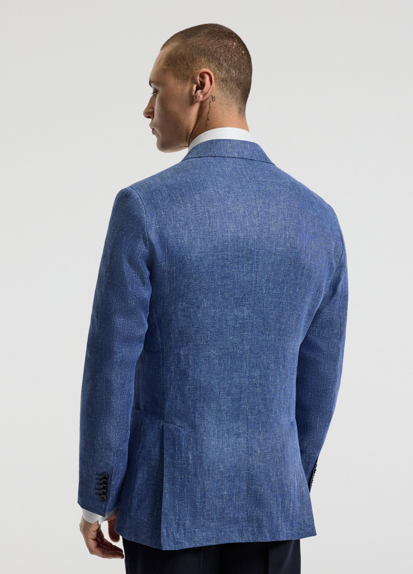 Linen Lyocell Twill Double-Breasted Blazer Blue