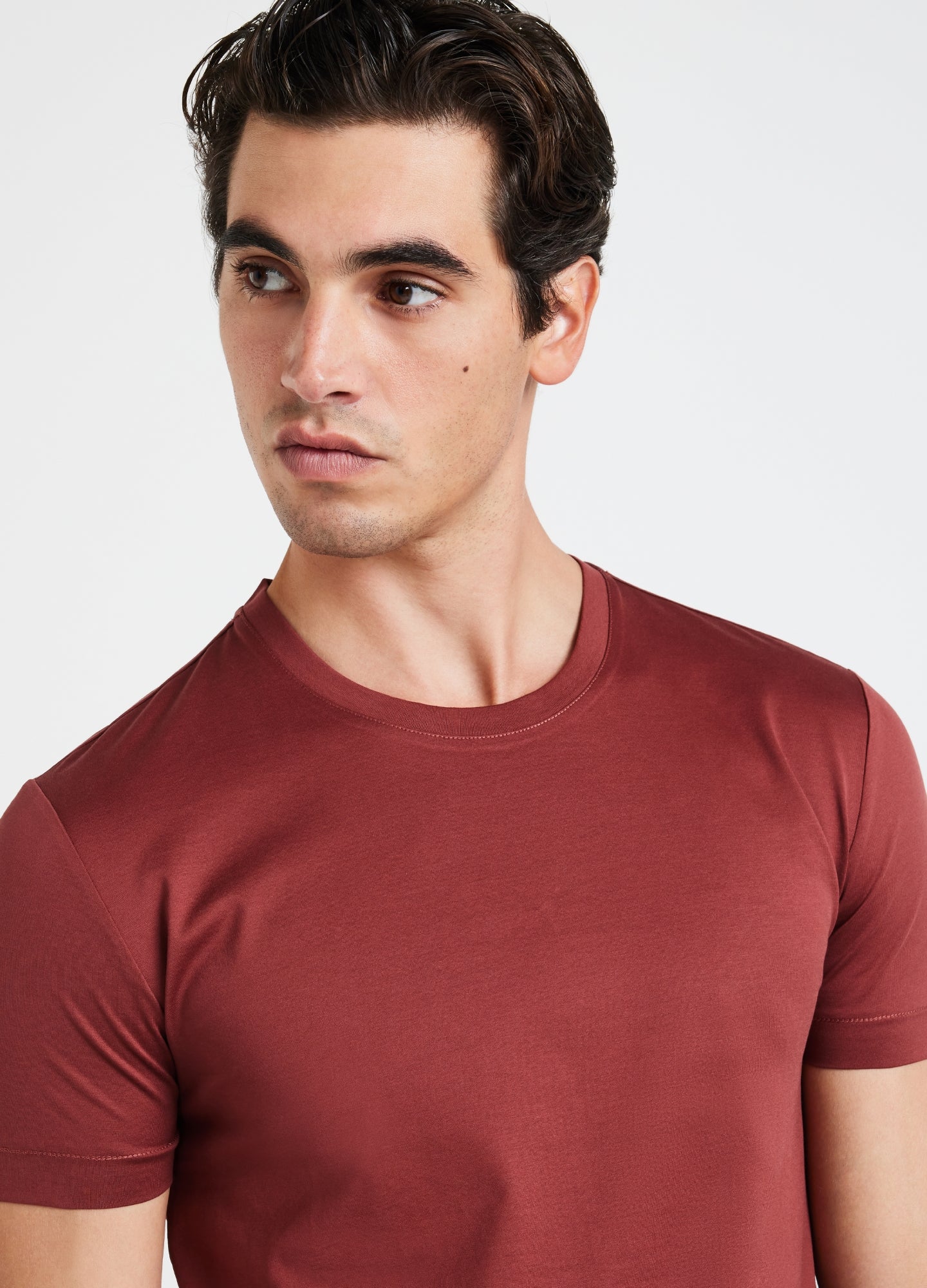 A wardrobe staple, the Mercerised Crew Neck T-shirt is crafted from a soft fabric and features a chain stitch on the cuffs and hem. Style it with chinos and sneakers for an effortless weekend look, or layer it under a blazer for a modern, work appropriate outfit.