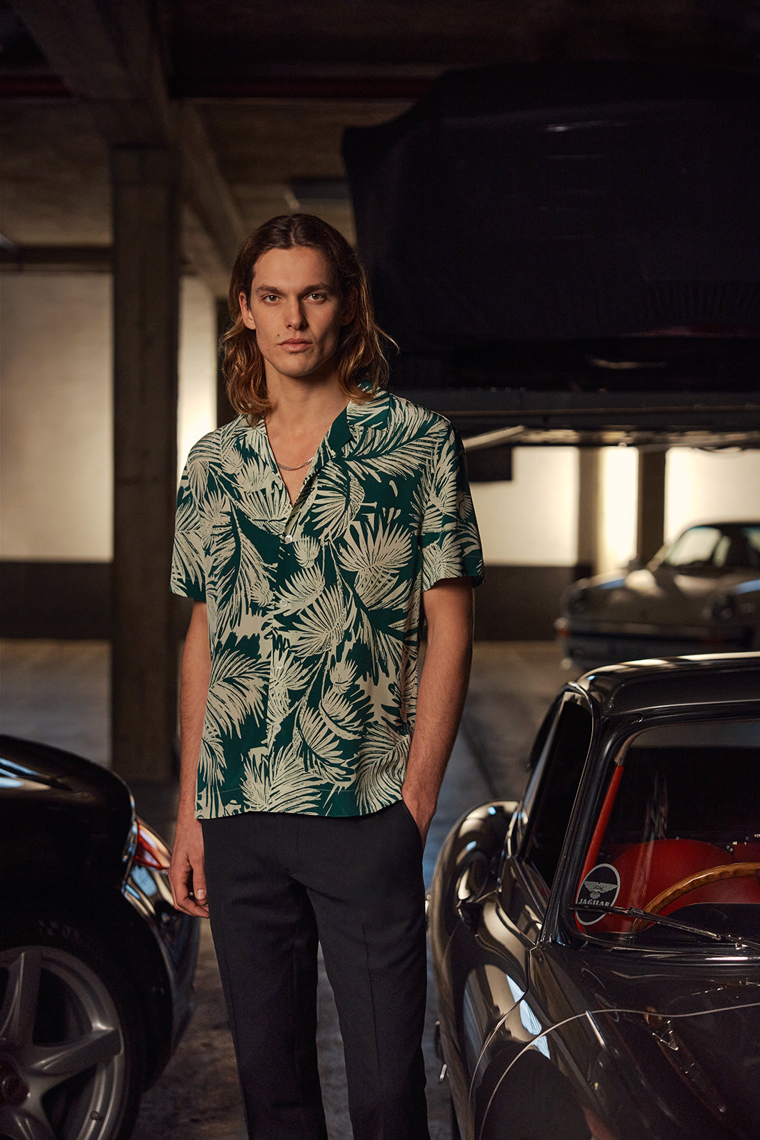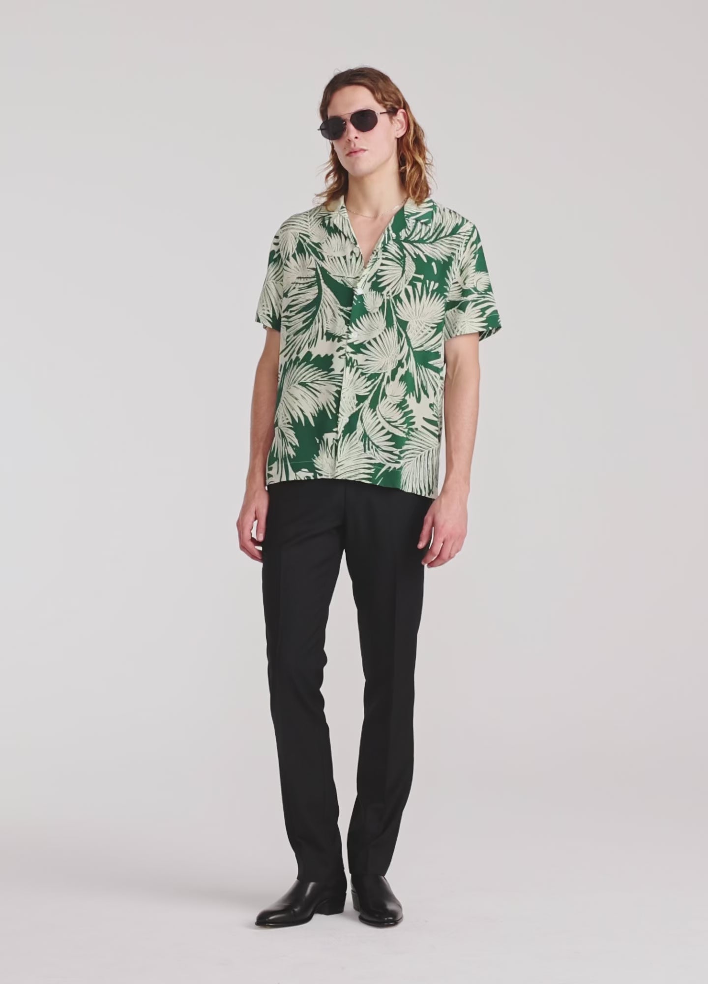 The Palm Leaf Silk Short Sleeve Shirt features a bold, abstracted palm leaf print designed by our Italian print atelier on a fluid Italian silk Crepe de Chine fabric. A lightweight style, it can be worn next-to-skin or layered over a singlet.