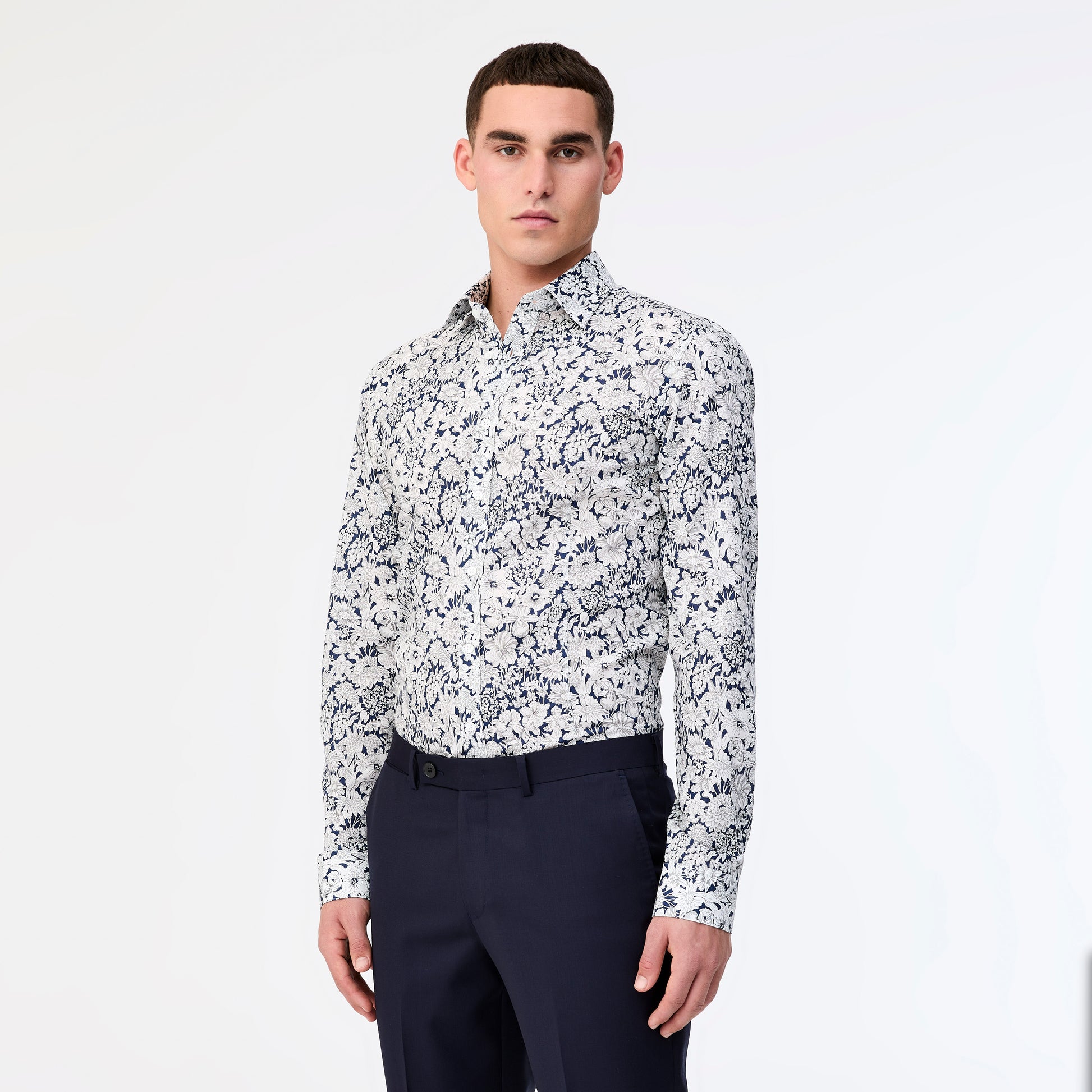 Tailored Fit Sketched Garden Printed Shirt Navy Combo