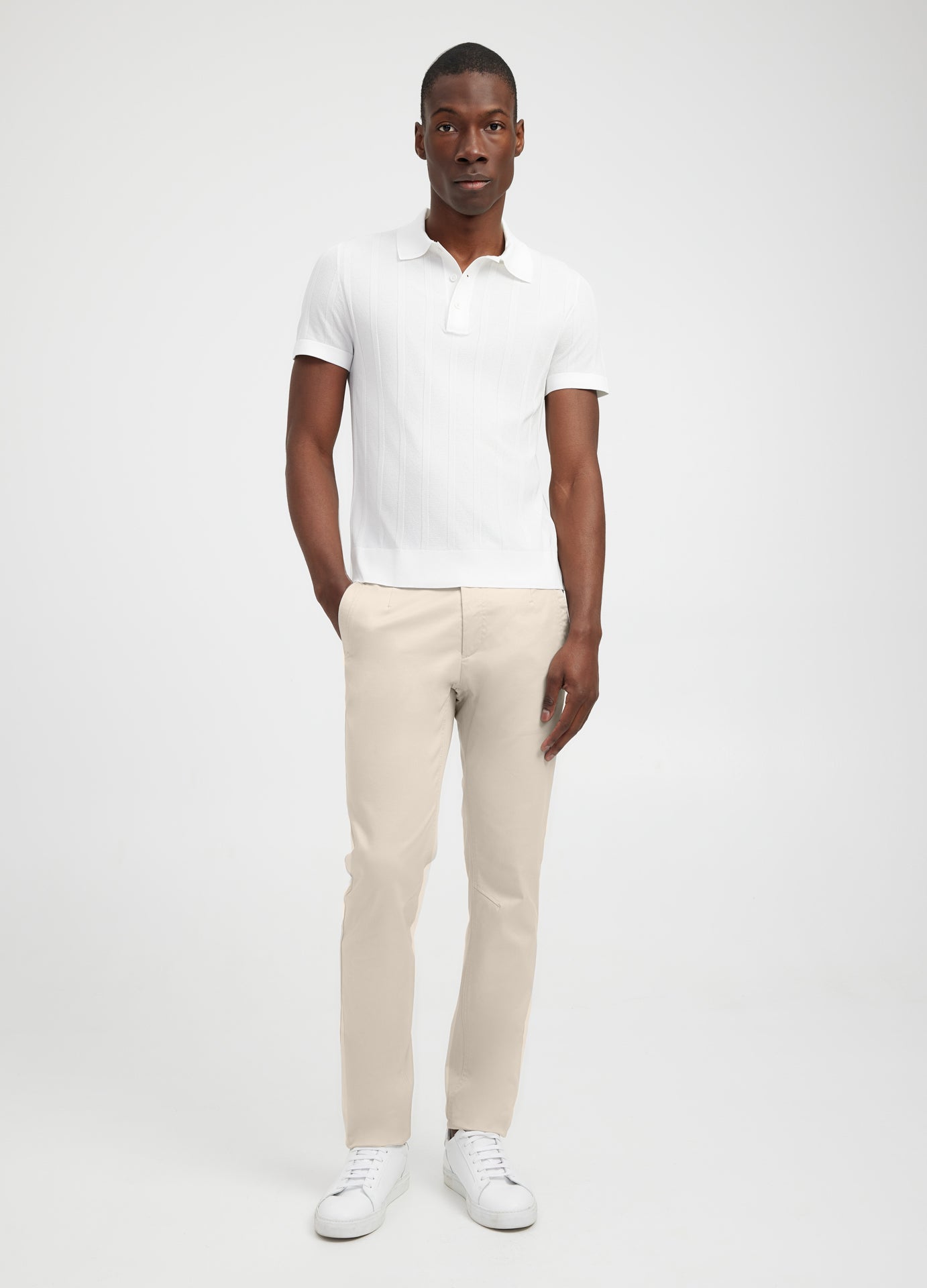 Our Slim Fit Cotton Stretch Chinos feature contemporary details such as contrast grosgrain tape loop at centre back waistband seam and angled welt pocket insert. Make them your go-to pants throughout the week and add them to your list of travel essentials. These chinos are easily paired with a shirt and blazer for a smart casual look or a basic t-shirt and bomber jacket for a relaxed style.