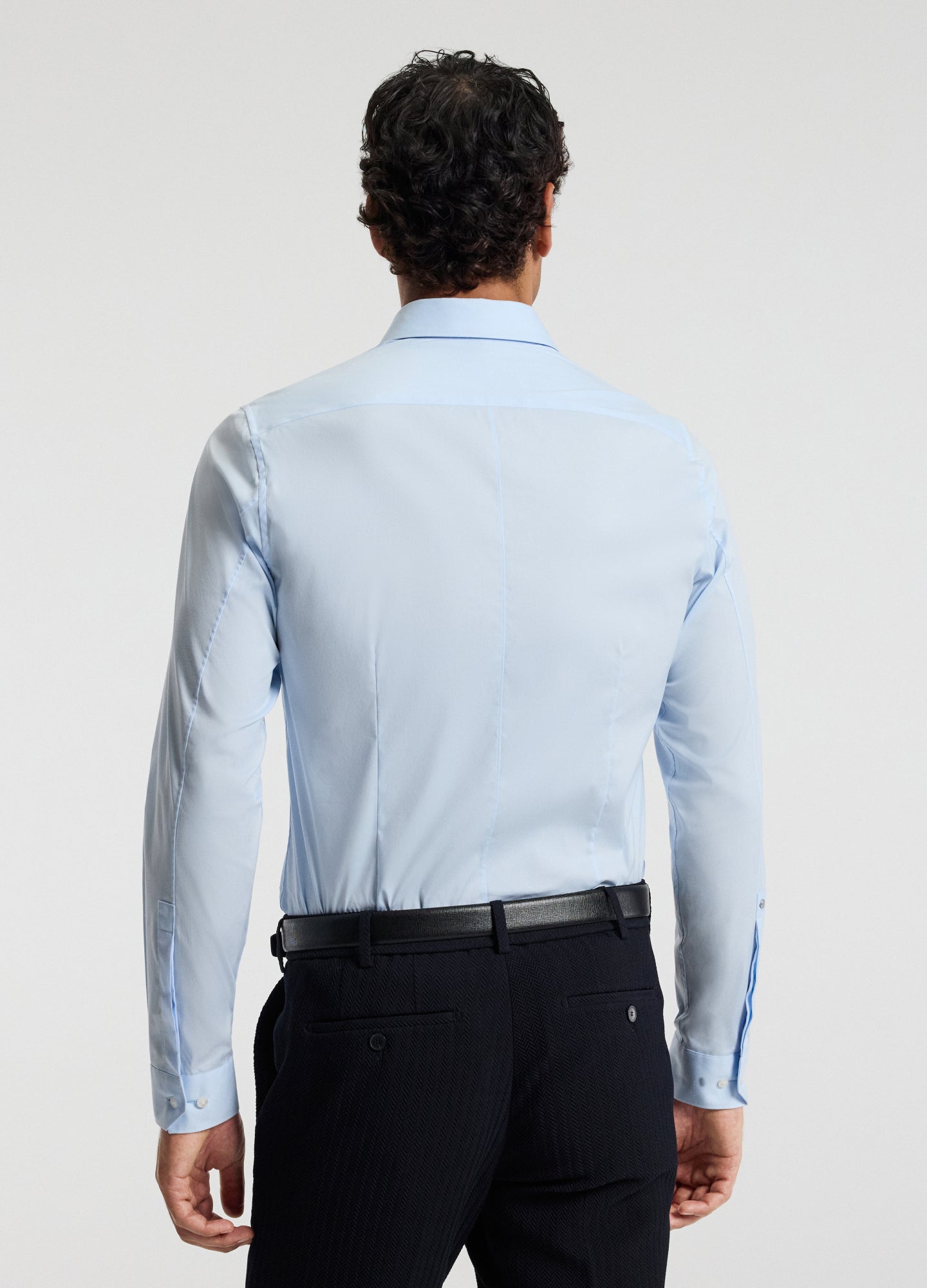 - Pointed collar with fixed bones (can be worn open or with a tie)
