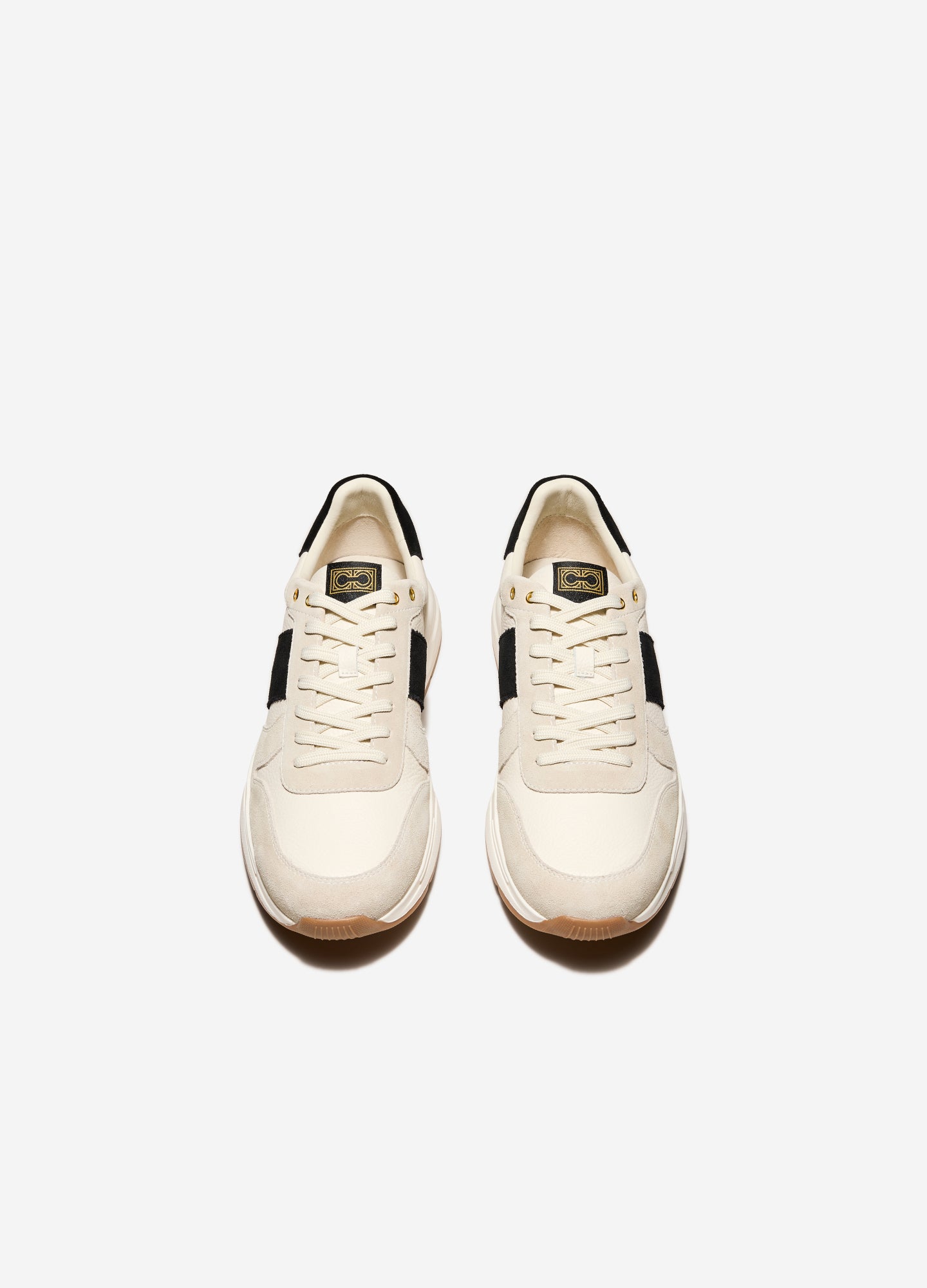 - A mix of textured and smooth leather with suede stripe