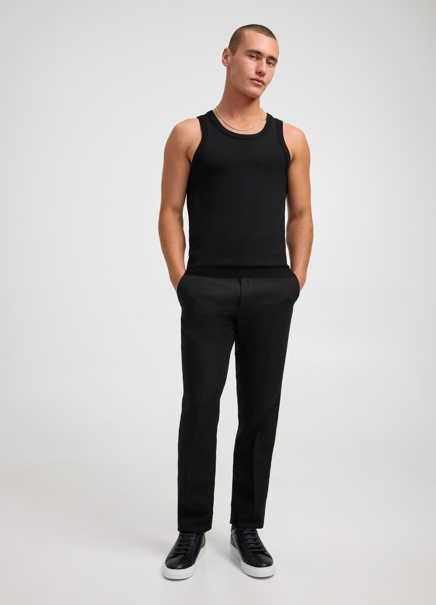 It's tank season. This summer, it's time to bare some skin and there is no better way to do that than the Tech Knitted Tank. Unlike others, this tank is made from CALIBRE's signature tech yarn, known for its luxurious softness and flattering fit. With defining rib trims, we love using it as an under layer for open lace and mesh shirts, or even under tailoring to amplify that rockstar attitude.