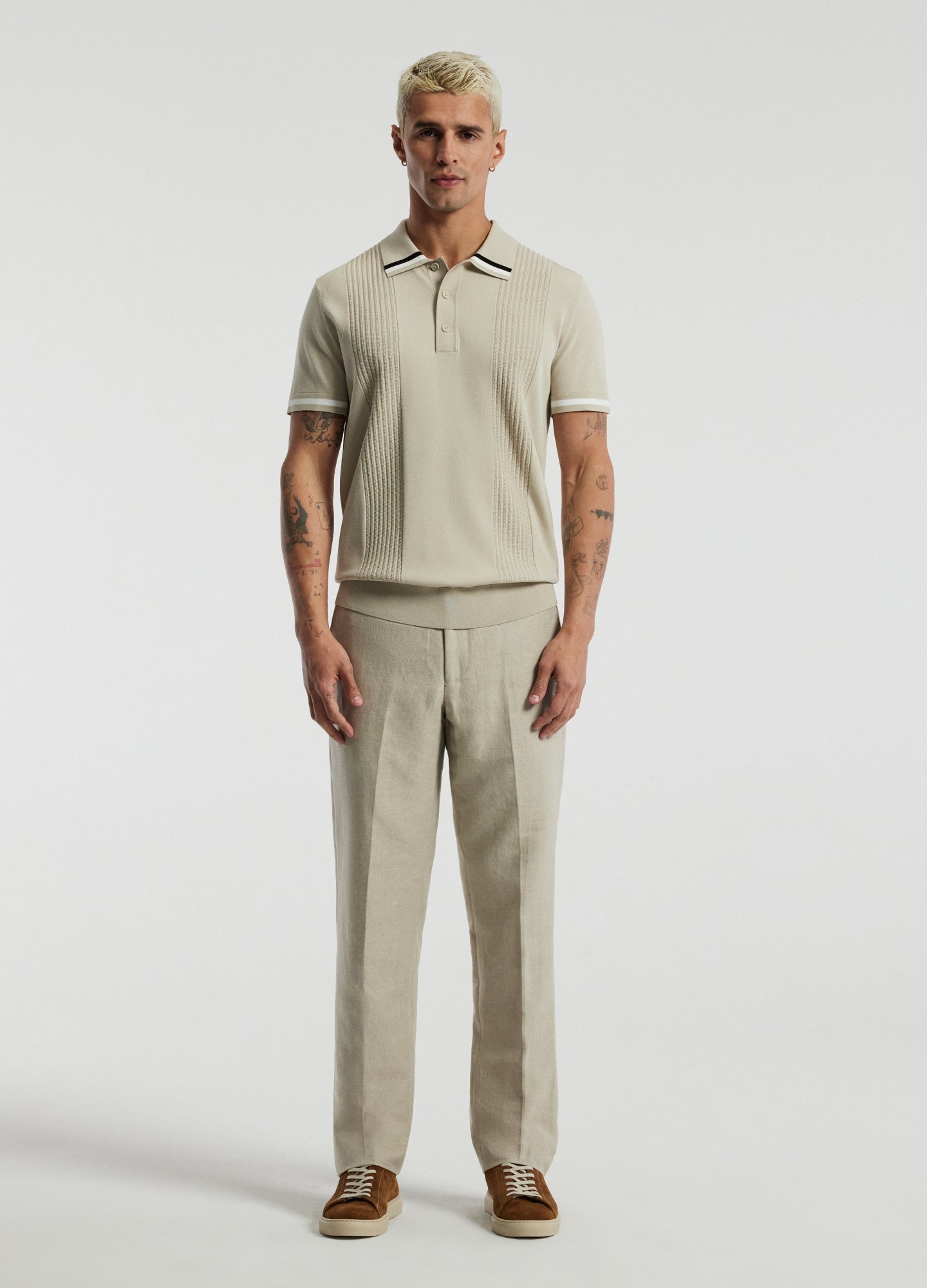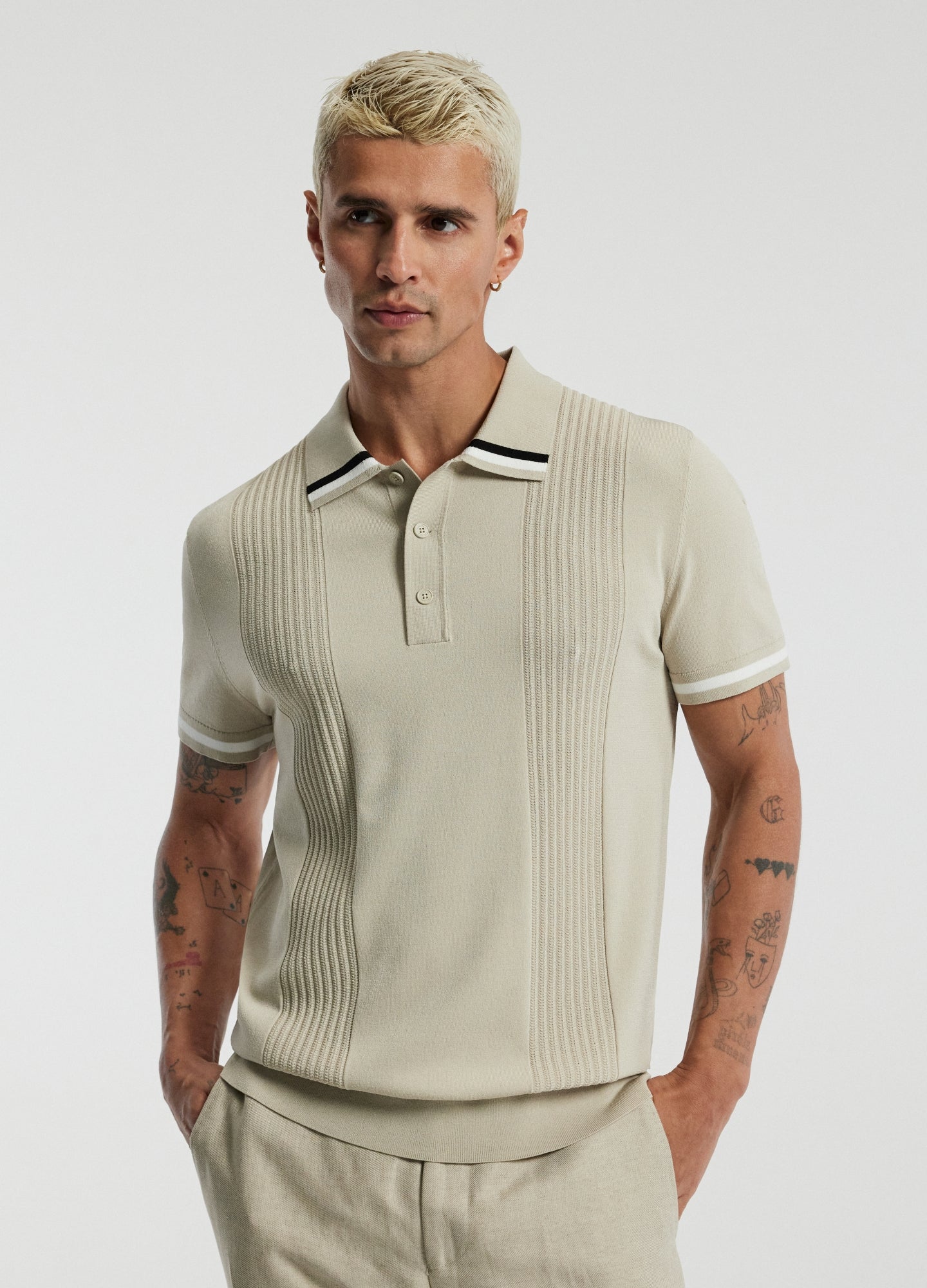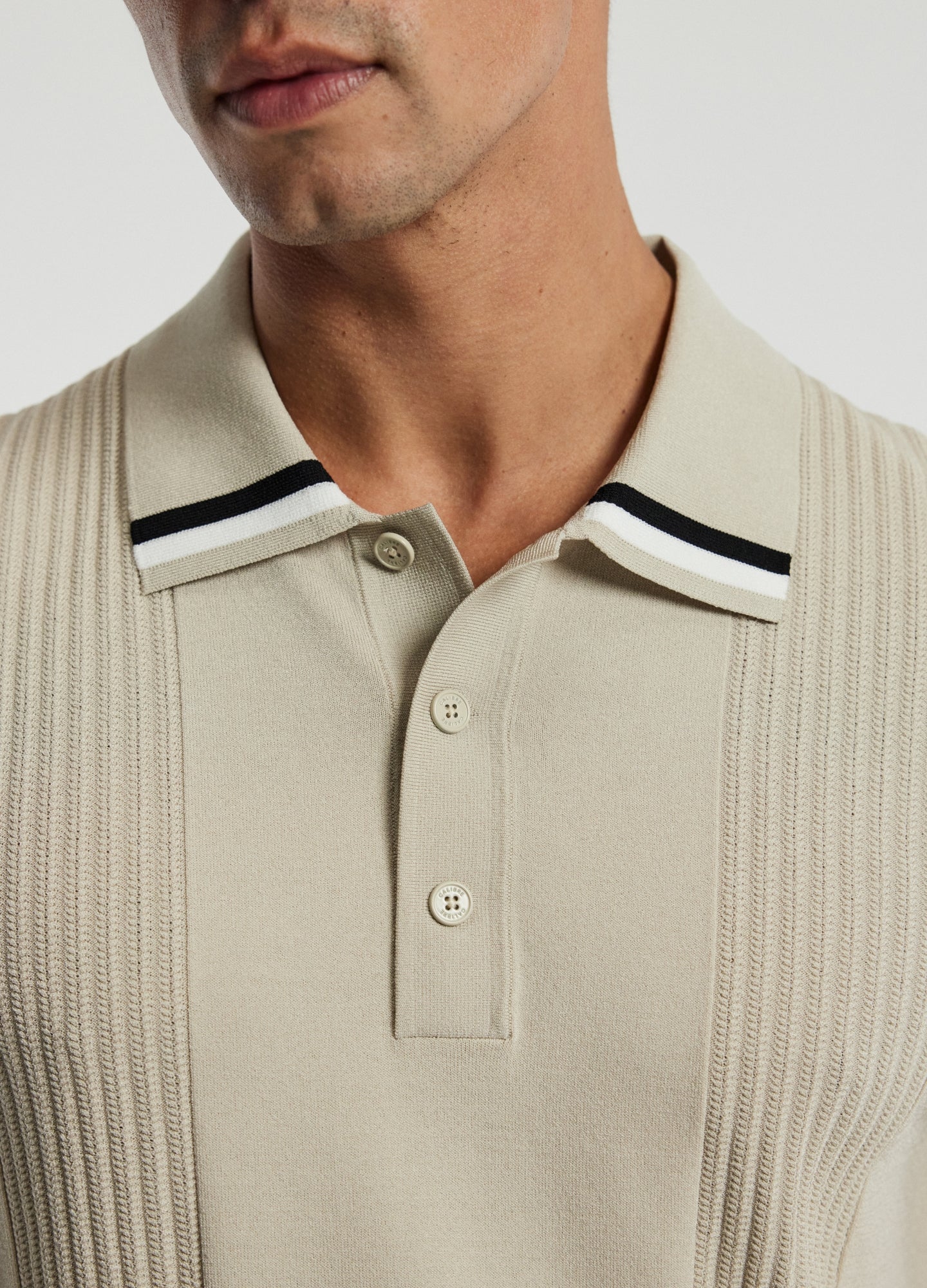 Tech Stripe Collar Polo Stone